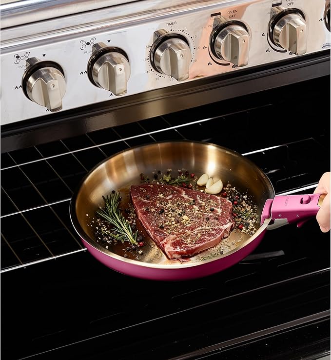 • 2. Oven-to-Table Versatility: Oven safe to 600°F (handles removed), seamlessly transition from stovetop to oven or fridge. Tri-ply base-to-rim ensures even heating for perfect roasts & bakes.