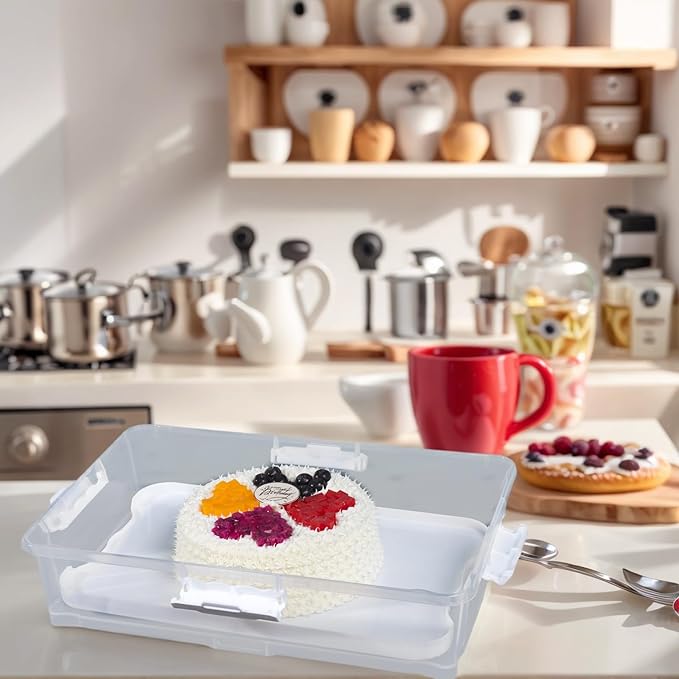 • Stackable Storage:The rectangular cake carrier is convenient and easy to use for transporting multiple cakes or cupcakes. Multiple trays can be stacked and snapped together.