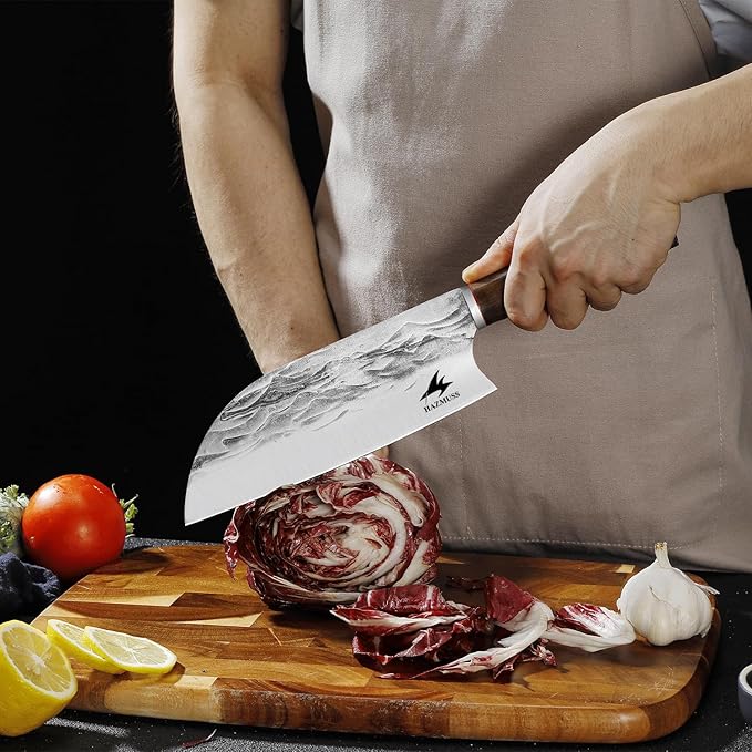 • PREMIUM STEEL: High-quality hammered high carbon stainless steel blade, with stunning visual effects, excellent edge retention, extremely sharp durability, and precise cutting performance