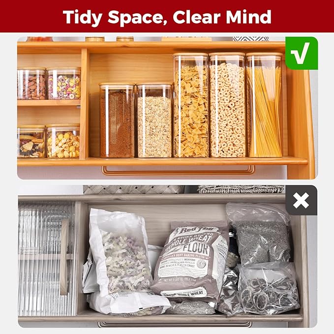 • 【Designed for Pasta, Perfect for More】Specifically made for storing pasta — the tall, rectangular shape fits spaghetti, linguine, udon, and other long noodles with ease. Also suitable for cookies, oats, beans, cereals, spices, coffee, and bath salts, making it a versatile storage solution for both kitchen and bathroom.