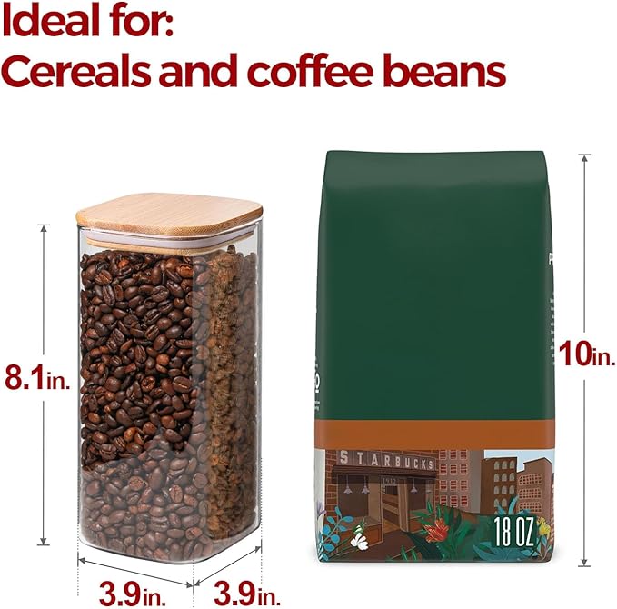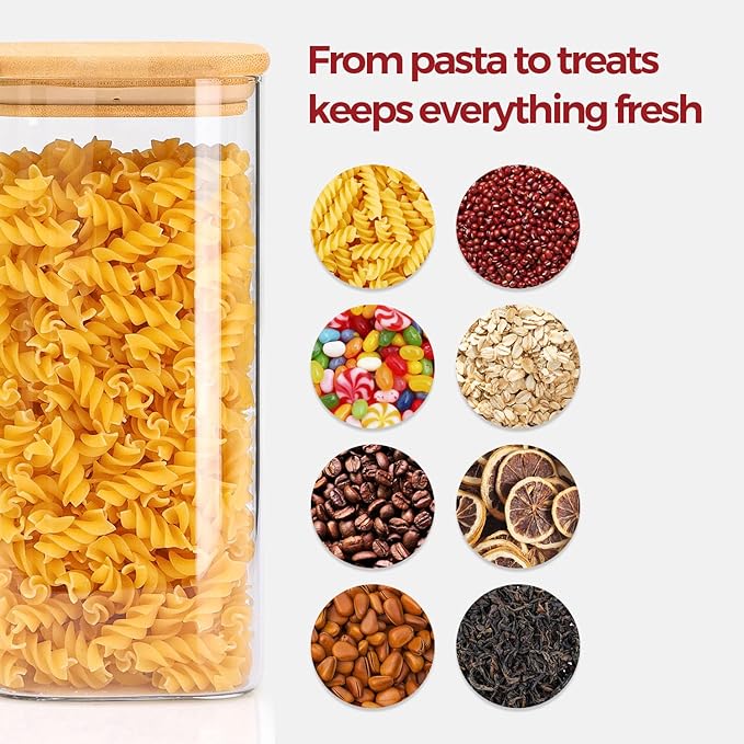 • 【Clear Glass, Easy Visibility】Made from crystal-clear glass, these square canisters let you see contents at a glance. A sleek and practical solution to keep your countertop, shelf, or cabinet neat and stocked.