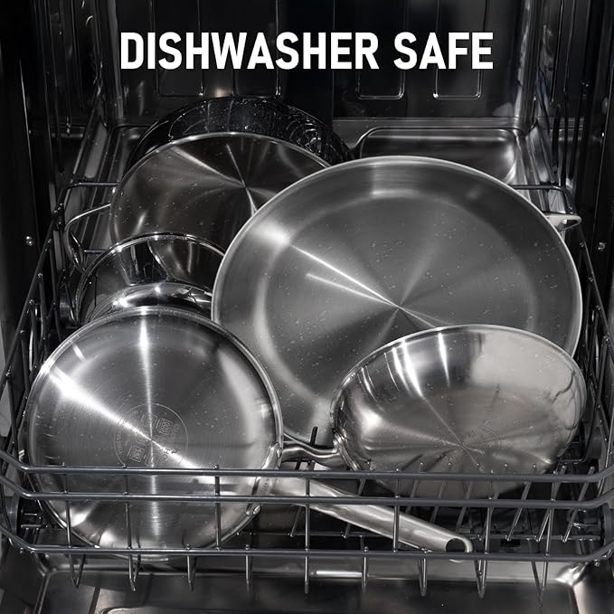 • Compatible with All Cooktops - GlobeHome stainless steel clad cookware features a 430 stainless steel exterior, making it safe for induction, oven safe up to 800°F, and dishwasher friendly. Seamlessly transitions across cooktops without compromising performance or durability