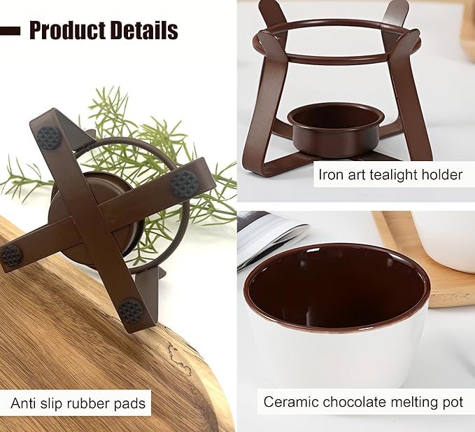 • 【High Quality Materials】: This Min Chocolate Melting Pot Set Composed of Ceremic Melting Pot and Thickened and Widened Metal Stand, There are Also Anti Slip Pads at The Bottom. Adopt Chocolate and White Matching Design, Sturdy and Durable, Elegant and Practical.