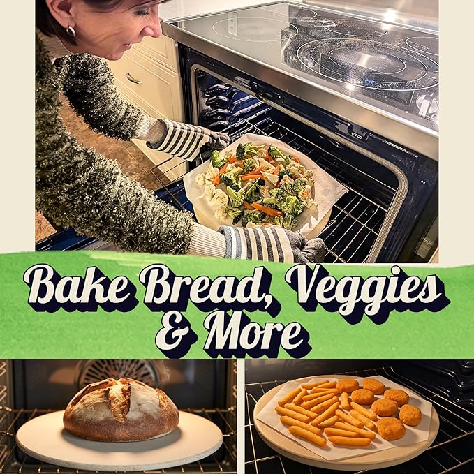 - EASY TO USE & VERSATILE: Beyond just pizza, our outdoor pizza oven stone offers endless possibilities. Use it as nonstick sourdough bread baking stone, biscuits, cookies, veggies, and more. Can use as a stone cookie sheet, bread stone, grill stone and more.