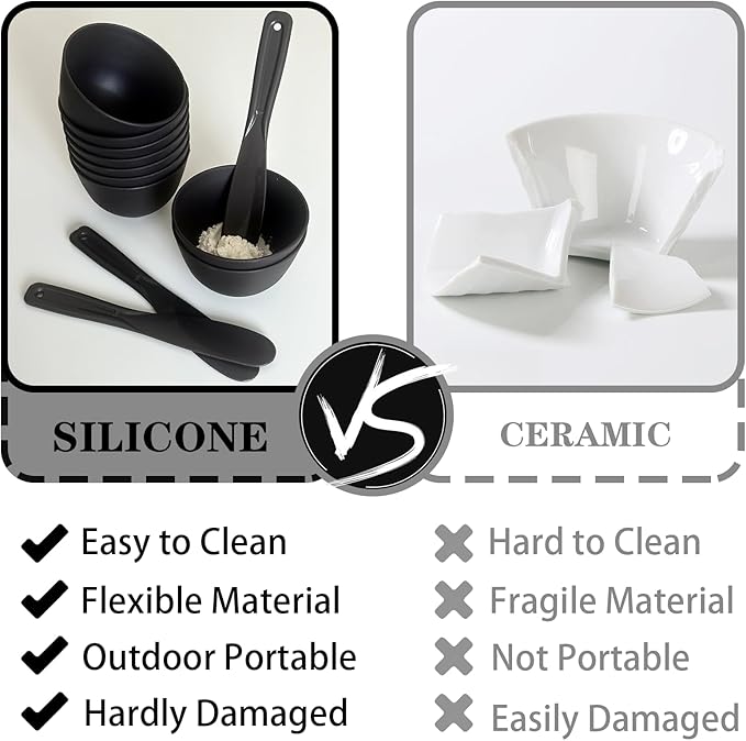 • Multi-functional: Silicone facial bowls can not only be used for making facial masks and skin care products, but also serve as a kitchen seasoning jar, a hair dye mixing bowl, and even hold snacks.Lightweight and foldable, it can be carried around for travel, household use, and beauty salons, taking up little space