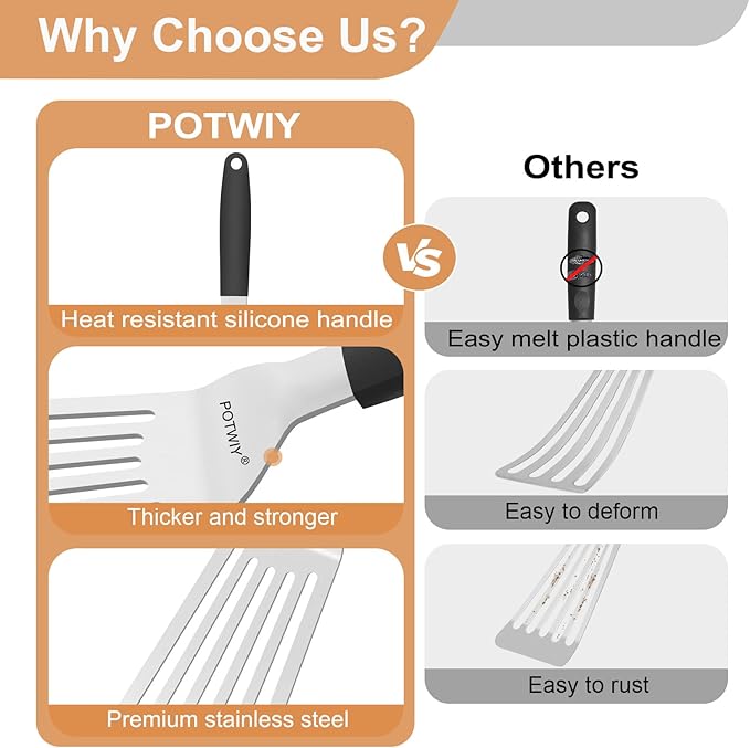 • Sturdy Construction: Fish spatula features one-piece high-quality stainless steel that is strong and not easy to break, and rust-resistant, with high heat-resistant silicone handle, effective heat insulation, comfortable non-slip and easy to control