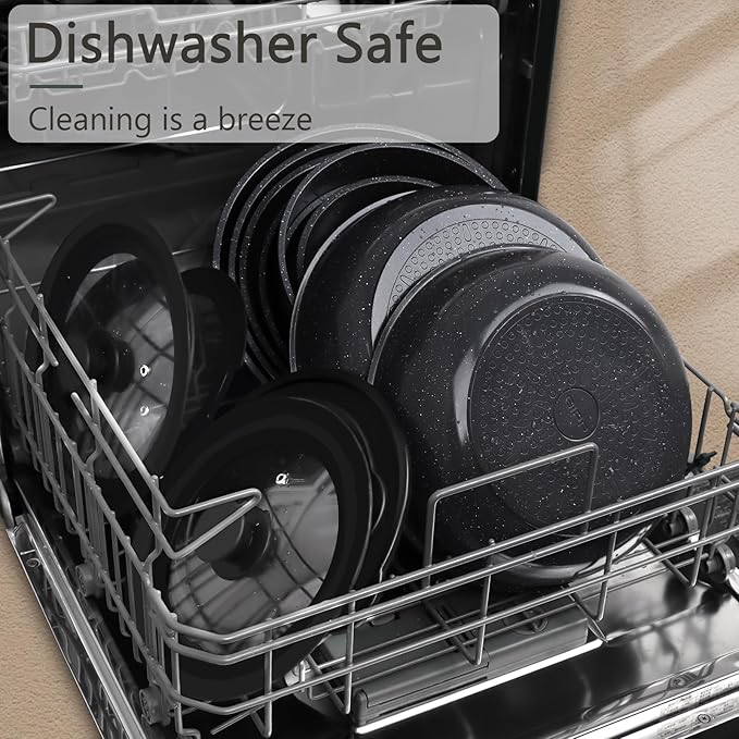 • Healthy Ceramic Coating - Made with 100% non-toxic ceramic nonstick coating, free from PFOA, PFAS, PTFE, lead, and cadmium. Enjoy healthier cooking with ceramic pots and pans set