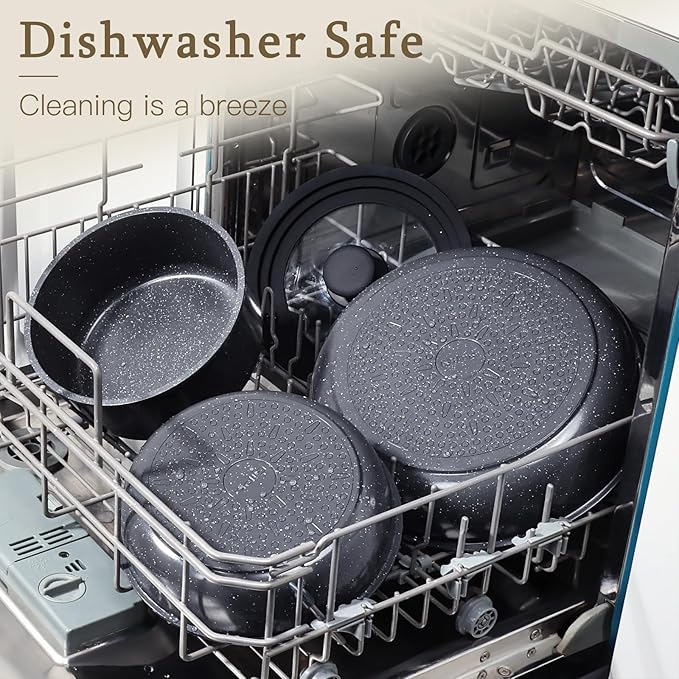• Healthy Ceramic Coating - Made with 100% non-toxic ceramic nonstick coating, free from PFOA, PFAS, PTFE, lead, and cadmium. Enjoy healthier cooking with ceramic pots and pans set