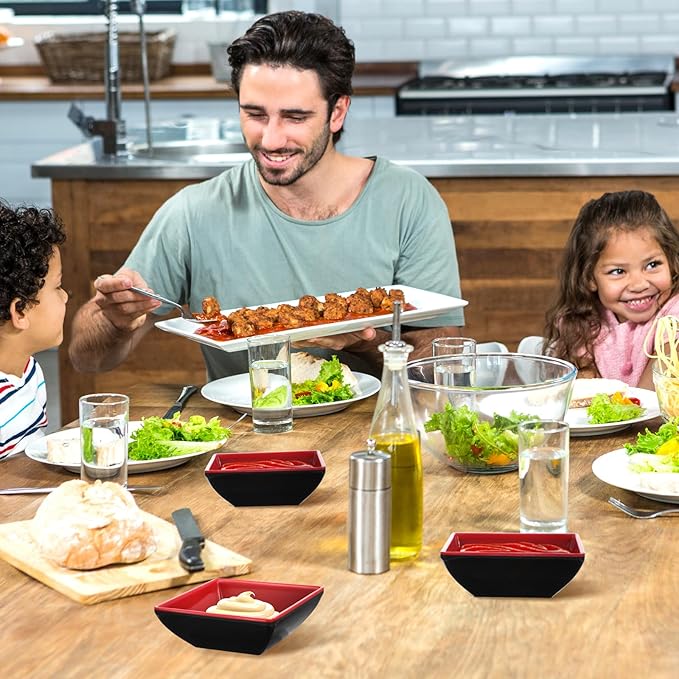 30 Pcs Dipping Bowls, Soy Sauce Dishes, Black Red Dipping Sauce Plate Set Small Dish Pinch Bowls for Condiment, Snack, Sushi, BBQ, Desserts