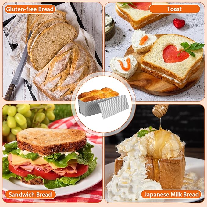 • CHEF-APPROVED DEMENSION&VERSATILITY – The 13"x4" baking surface accommodates 2.2lb dough batches effortlessly. As a premium bread loaf pan, it offers dual-mode functionality: Use the airtight lid for perfectly square sandwich bread loaf pan creations or remove it for artisan-style baking. Perfect for everything from rustic homemade bread to professional patisserie.