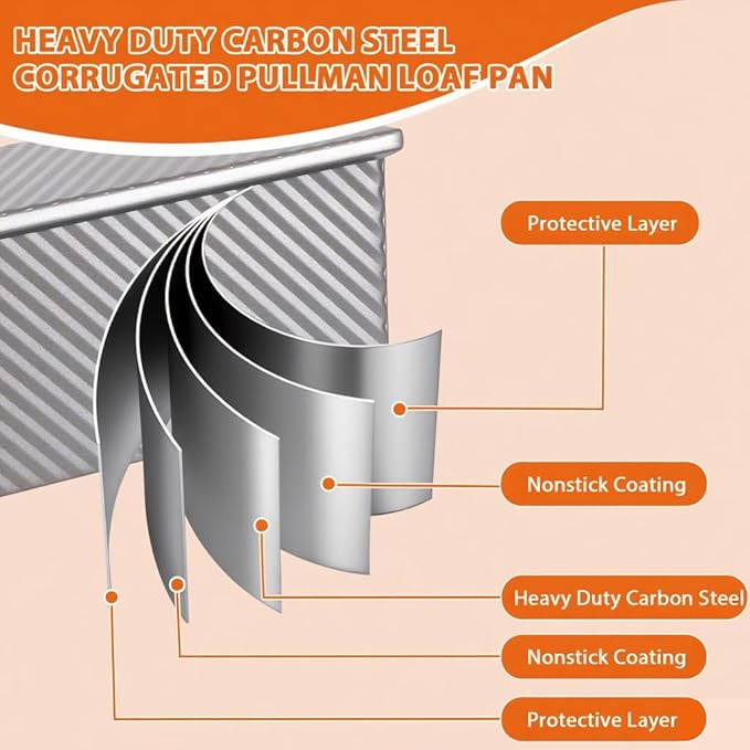 • DUARABLE&EASY MAINTENANCE – Featuring food-safe nonstick coating (PFOA/PTFE/BPA Free), this carbon steel bread pan resists rust and stains. Hand-wash recommended for longevity - simply soak in warm soapy water for 10 mins. Includes silicone corner protectors to prevent coating damage during storage.