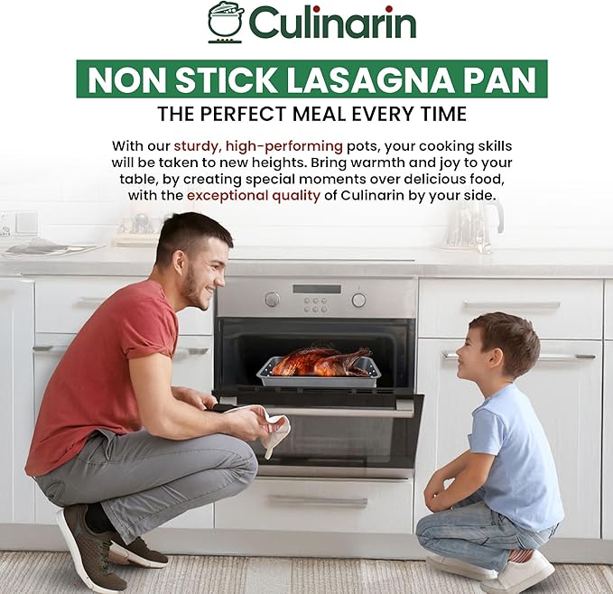 • DOUBLE LAYERED NONSTICK: Release your food easily with our lasagna pans double-layered nonstick coating that will last and is oven-safe up to 450F