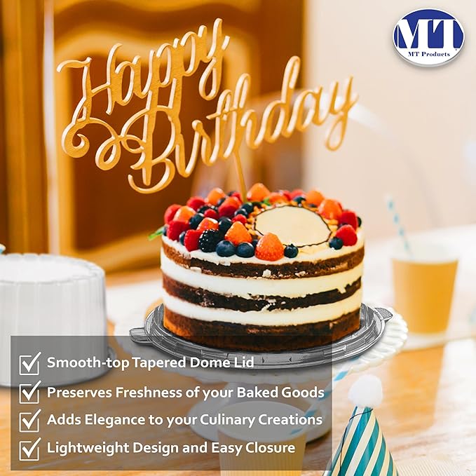 • PRESENTATION: Perfect plastic cake containers with lids for a party or celebration, this cake cover, smooth-top tapered dome lid provides elegance and charm and allows for optimal product visibility without getting anything messy. Highlight your cakes and cookies with this showstopper plastic cake box for a mouthwatering presentation.
