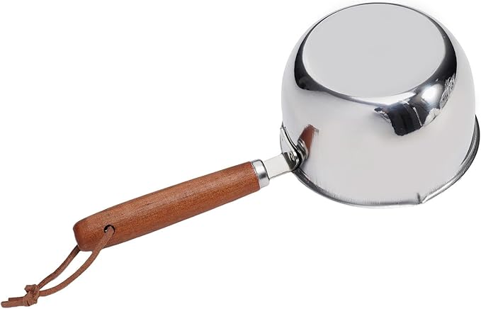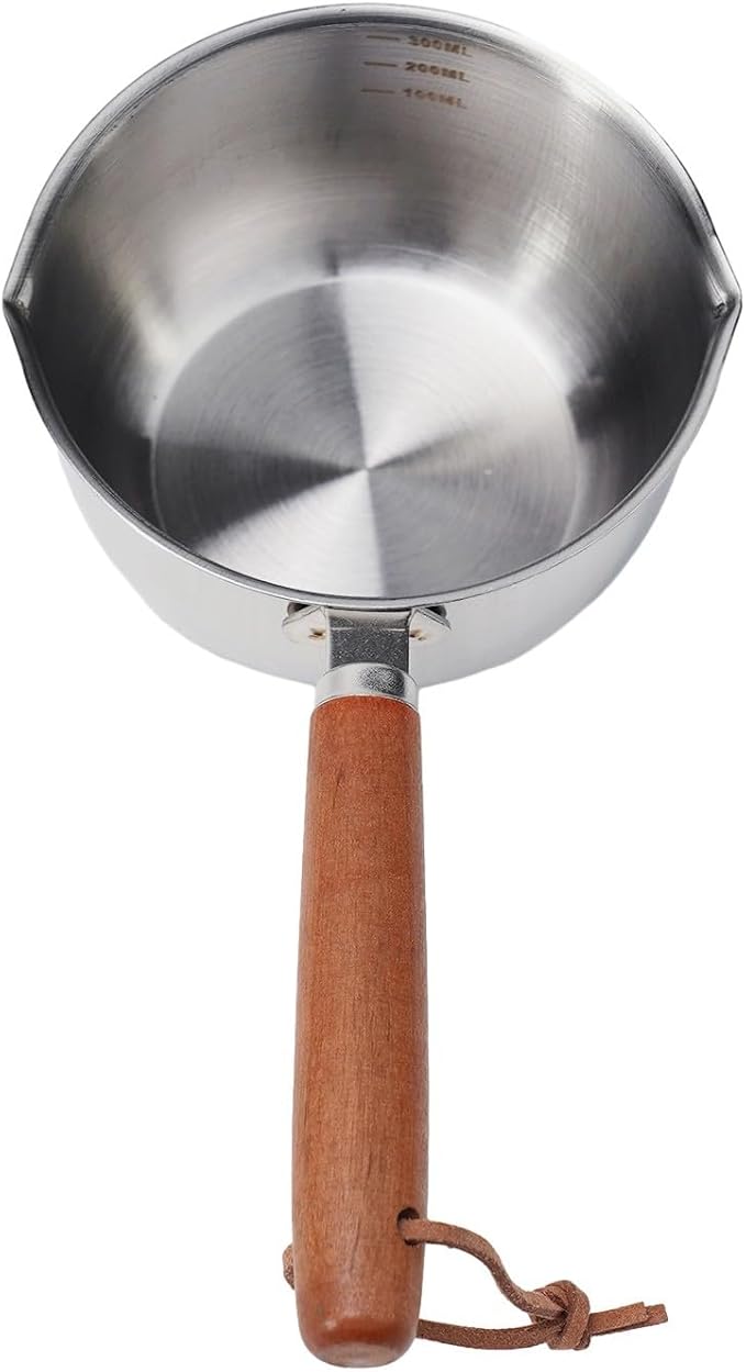Stainless Steel Butter Melting Pot Multi-Purpose Sauce Pan Mini Milk Warmer with Wooden Handle for Induction Gas Electric Stove Compatible Kitchen Tool(300ml)