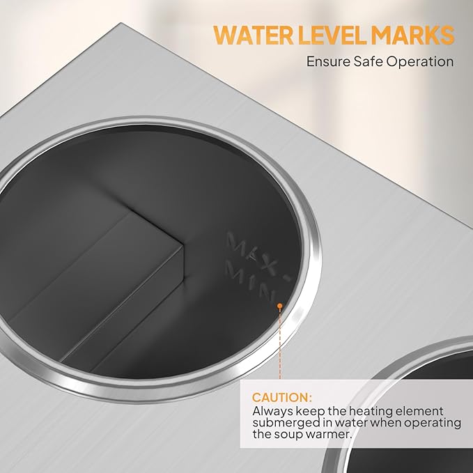 • 【Wide Usage】 Perfect for restaurants, hotels, catering services, church events, or any food service operation. Whether you're serving hot soups, maintaining sauce temperatures, or keeping prepared foods warm, this commercial soup warmer adapts to various culinary needs while providing consistent, reliable performance