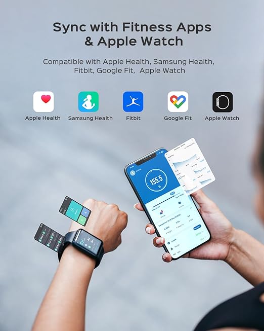 • Sync & Share with Ease: Connect your scale for body weight to Apple Health, Google Fit, Samsung Health, or Apple Watch. Set goals, track trends, and share progress