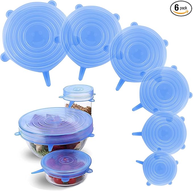 Silicone Stretch Lids – 6 Pack Reusable Food Covers,Flexible Silicone for Bowls, Containers, Fruits – Airtight & Leakproof Seal for Kitchen Storage(blue)