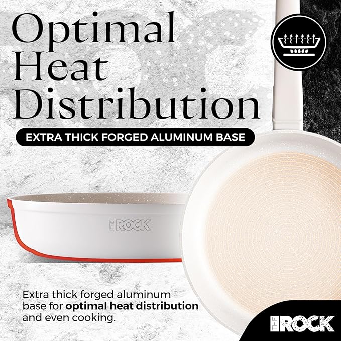 • Even Cooking: Thick aluminum base ensures fast and even heat distribution, preventing hot spots for consistently perfect results