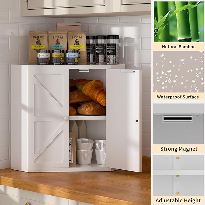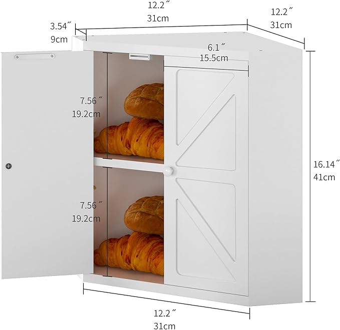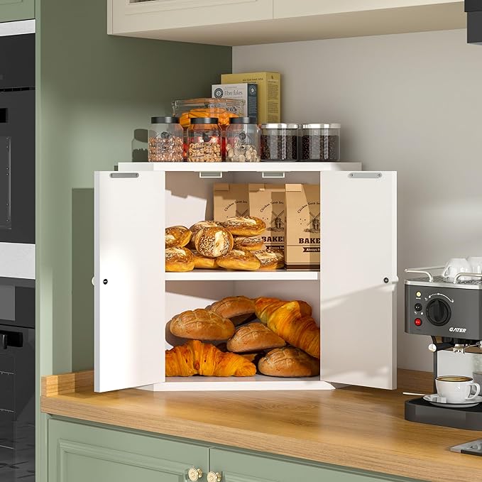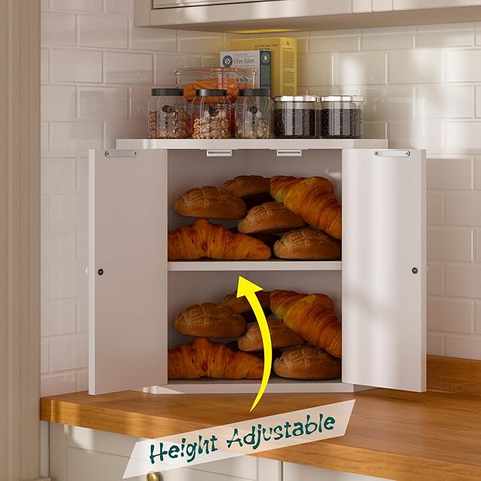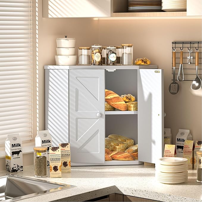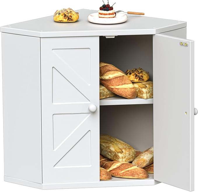 Corner Bread Box for Kitchen Countertop,Storage Container for Homemade Bread, Double Layer BreadBox, Large Capacity Bread Storage Bin, Vintage Farmhouse Breadbox Organizer,White