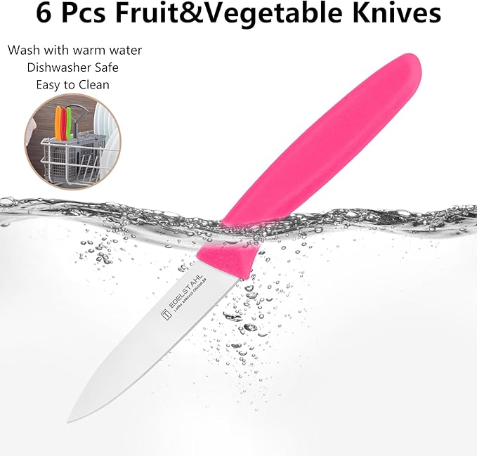 • 【SAFETY&DURABILITY】The handle of the paring knife set,fruit knife is made of polypropylene(PP),a hygienic plastic material that is resistant to impact and high temperatures.It can be cleaned with chemicals and is dishwasher safe.