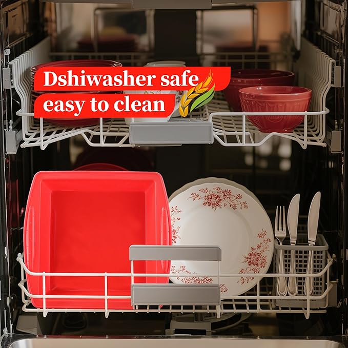 - Wide Temperature Resistance – Safe from -40°F to 446°F: These square cake pans are built to handle extreme temperatures with ease. Oven safe up to 446°F and freezer safe down to -40°F, they’re perfect for baking, freezing, reheating, or chilling. Go straight from freezer to oven or oven to fridge without cracking or damage. Suitable for use in ovens, microwaves, refrigerators, and dishwashers, making them ideal for both hot and cold dishes—from baked ziti to frozen cheesecakes