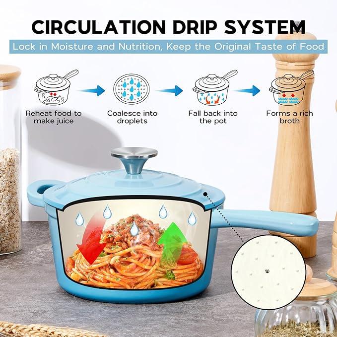 • Versatile : 2 quart saucepan serves 2-3 people, perfect for various cooking techniques like stewing, baking, roasting, stylish look allows you to serve food directly from stovetop to table, no extra dishes needed