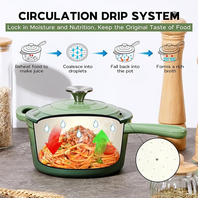 • Versatile : 2 quart saucepan serves 2-3 people, perfect for various cooking techniques like stewing, baking, roasting, stylish look allows you to serve food directly from stovetop to table, no extra dishes needed