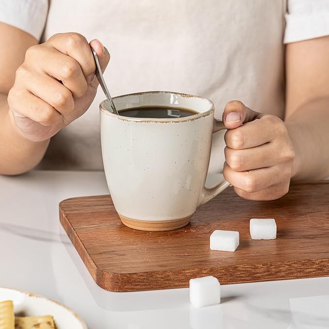 AmorArc 12oz Ceramic Coffee Mugs set of 6, Stylish Coffee Mugs with Rustic Terracotta Underside for Latte/Cappuccino/Milk/Cocoa, Dishwasher&Microwave Safe, Light Beige