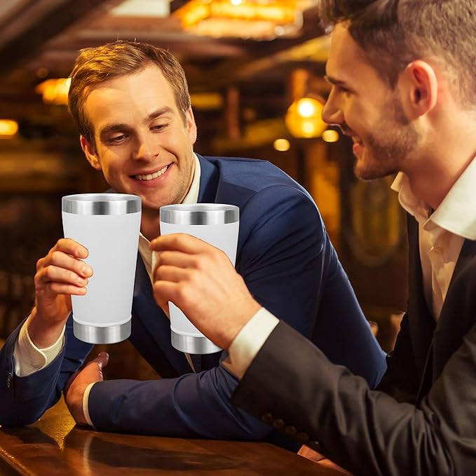 16 oz Beer Tumber Insulated Set of 4, Pint Glass Stainless Steel Double Walled, Stackable Cold Drinking Cup Mug Stein, White, Ideal for Beer Lover, Coffee, Outdoor