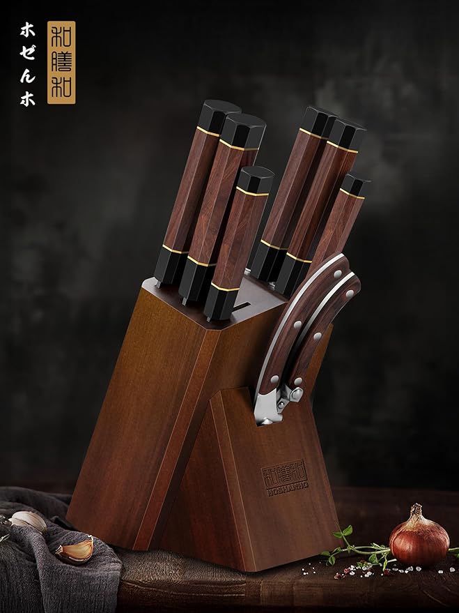 HOSHANHO 8 Pieces Knife Set, Japanese High Carbon Steel Kitchen Knives Set with Block, Hand Forged Ultra Sharp Chef Knife Set with Ergonomic Rosewood Handle