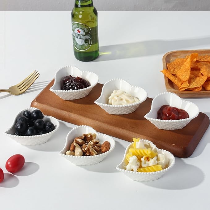 UIBFCWN 6 Pack 1.7 Oz Ceramic Soy Sauce Dish, White Dipping Sauce Bowls, Heart Shape Dipping Bowls for Ketchup, Vinegar, Sushi, BBQ and Party Dinner, Condiment Server