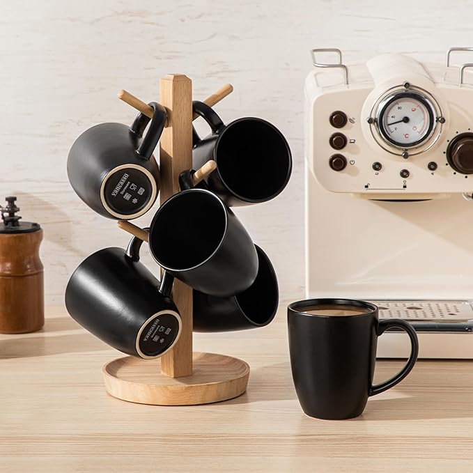 • 【Elegant Black Mug Set for Daily Use】Includes 6 classic black ceramic mugs in 12oz sizes—ideal for coffee, tea, hot chocolate, or cappuccinos. The clean design fits seamlessly into any kitchen, office, or café setting.