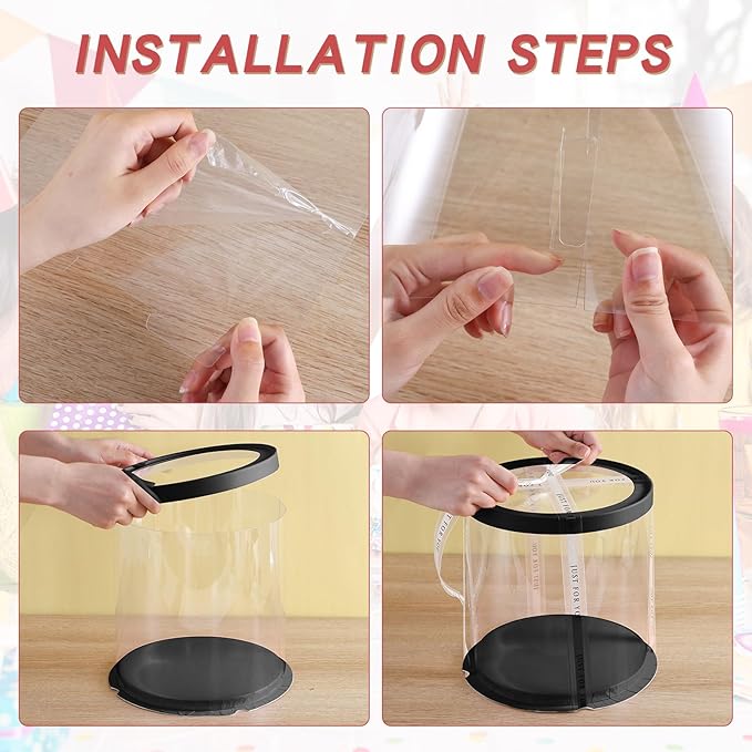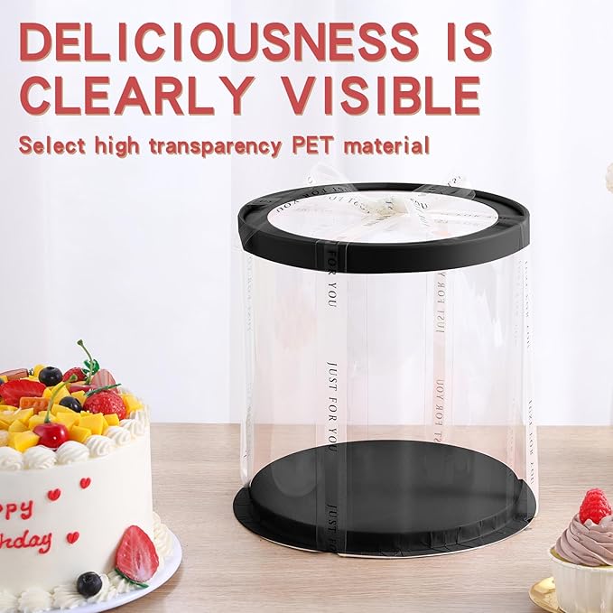 • Easy to Assemble:After receiving the cake, you can pick up the lid, then fold the border of the cake and place it on the cake board. It's very simple, you can do it!There are protective films on both sides of the PET box to prevent scratches on the surface. (Note: Please gently tear off the film on both sides before use, it will be brighter)