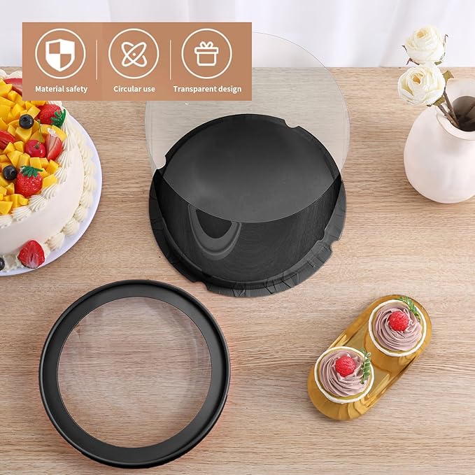 • Package Include:Tt includes 6 transparent Round cake boxes with A roll of blessing ribbon. Box size: 8.5"x9.5", suitable for 7inch and 6inch cakes and gift packaging. Made of cardboard and PET materials, safe and durable. The middle part of the cake box are transparent, the top and bottom tray is Black.