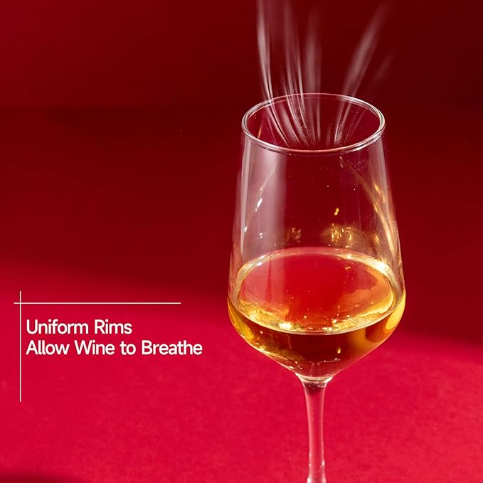 • 【ENHANCE WINE TASTING】The tulip-shaped wine glass is the best shape for making wine glasses. The body of the glass is not only beautiful but also allows the wine to "breathe" fully during consumption, without excessive oxidation. The edge of the glass mouth feels extremely thin and inconspicuous, as if floating in the air. It makes the tasting experience feel like drinking wine in the air. These features enable people to better appreciate the taste of the wine itself.
