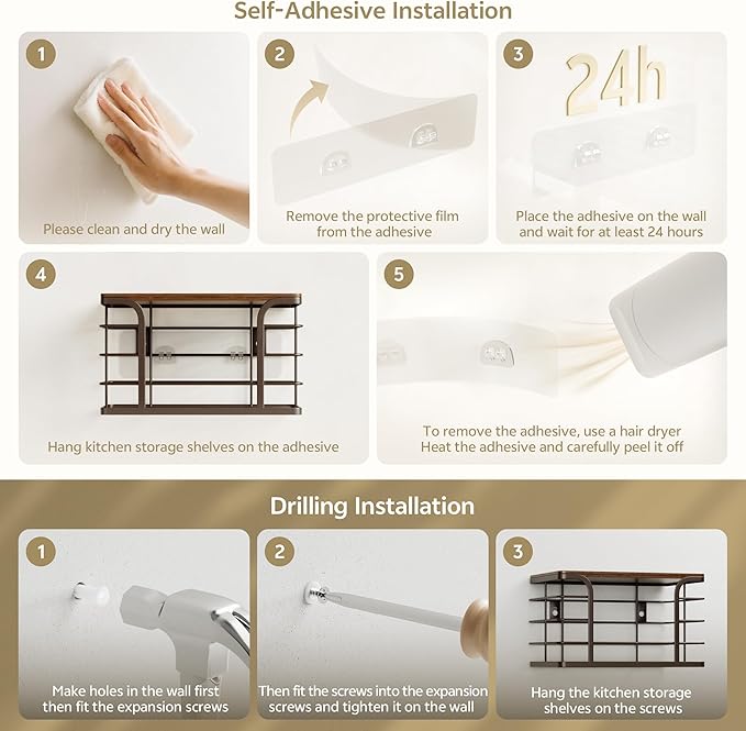 • 3 Versatile Options for Use: Use as a countertop organizer, wall mount with included adhesive strips (wait 24 hours post-install, for smooth hard walls), or drill-mount with provided accessories. Fits any home storage setup—laundry room, kitchen, or pantry