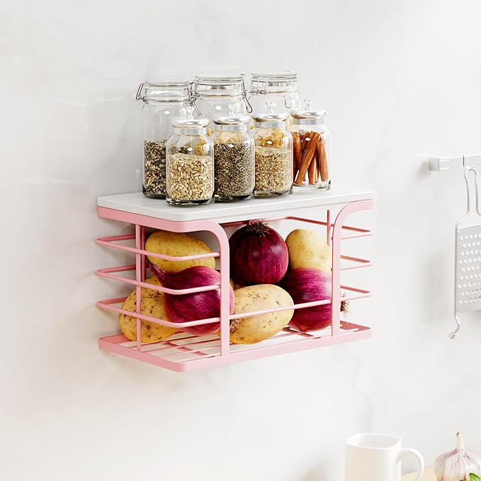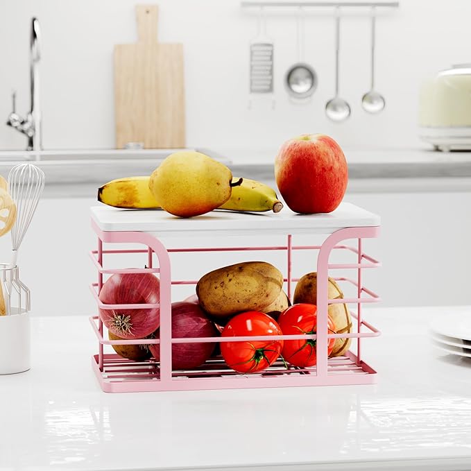 • Wide Applications:Standard size basket frame and bamboo top design make it perfect for multiple uses. Use it on kitchen countertops, on cabinet shelves and in the pantry to store fruits, vegetables, snacks, etc. Also suitable for under the sink in the kitchen and bathroom, laundry room organization and storage, etc