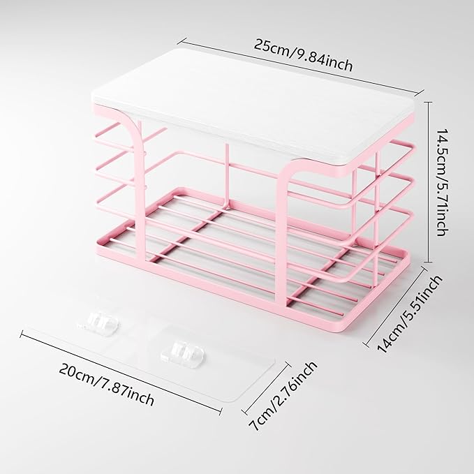 Small Grocery Bag Holder,Wall Mount Trash Bag Holder Dispenser with Bamboo Top,Suitable for Garbage Bags of 100 Rolls under 13 Gallons,Pink