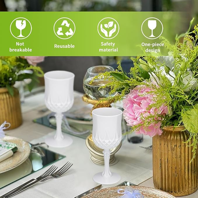 JLYLOL Plastic Vintage Wine Glasses 7OZ Plastic Goblets Vintage Drinking Glasses 24PCS Retro Wedding Glassware Water Goblets Reusable Drinking Cups for Party,Reception,Celebration,Bar,Whiskey(White)