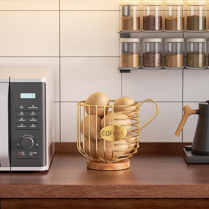 • 【Multi - functional & Versatile Use】This iron coffee basket isn't just for coffee pods. It's ideal for storing kitchen essentials like spoons, eggs, chocolate in the kitchen, or treats like candies in the living room, meeting various storage needs