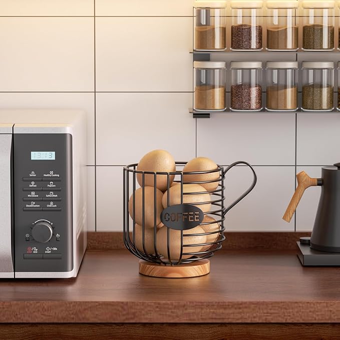 • 【Multi - functional & Versatile Use】This iron coffee basket isn't just for coffee pods. It's ideal for storing kitchen essentials like spoons, eggs, chocolate in the kitchen, or treats like candies in the living room, meeting various storage needs