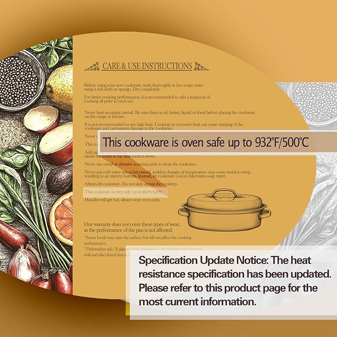 • High - Temperature Resistance:Made of premium granite enamel material, these roast pans can resist high temperatures up to 932°F. (Note a misprint in the manual: the heat resistance is 932°F. Please refer to this page for accurate specifications.)This allows for a wide range of cooking methods, from slow - roasting to high - heat baking, ensuring consistent and excellent cooking performance.