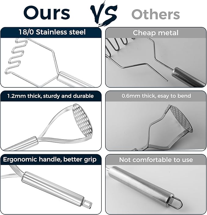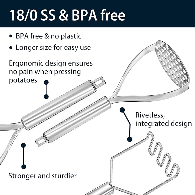 • Sturdy & heavy-duty - Rivetless & integrated body design. We don't need to worry about the masher falling apart after heavy use.