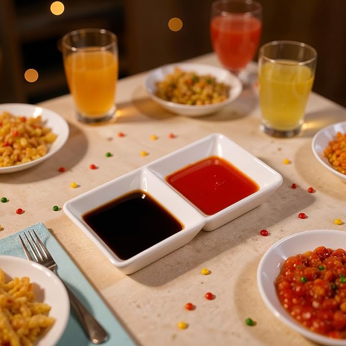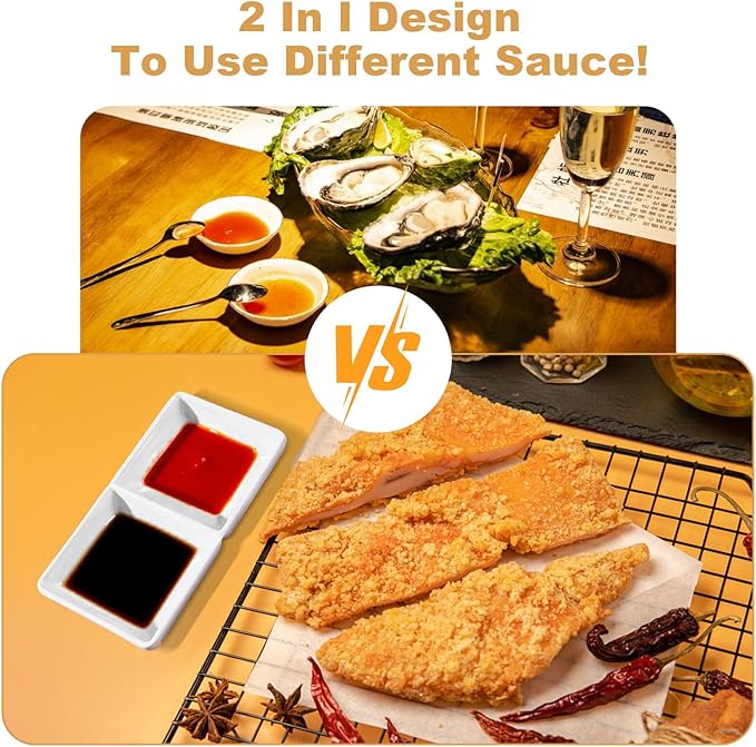 • Quality Material: the 2 compartment sauce dish is made of quality material, not easy to stain, scratch or break, you can use this sauce bowl set with confidence; They are also easy to clean and wash, and you will be satisfied