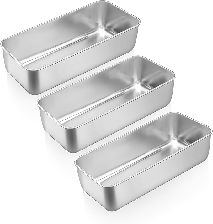 • STURDY & DURABLE: Built to last, these heavy-duty metal bread pans withstand oven temperatures up to 450°F without warping and prevent denting even when stacked with heavy dishes, Stackable design saves space
