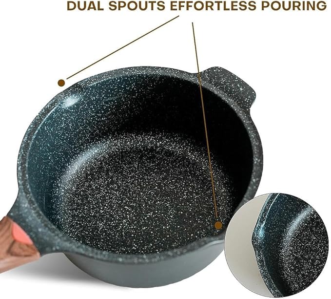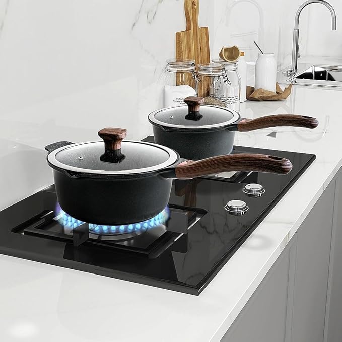 • 【2-Piece Cookware Set】Includes 3QT and 4QT saucepans with PFOA/PFOS-free granite coating. Designed to require less oil during cooking with reduced smoke production. Features easy-release coating and included lids, suitable for heating milk, preparing porridge or sauces.