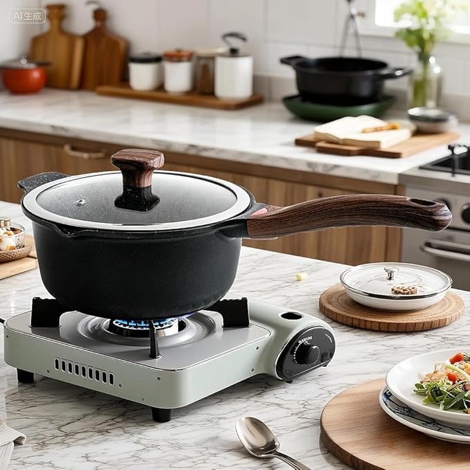 • 【All-Stove Compatibility】Cast aluminum core ensures durable construction with fast, even heating. The high-conductivity stainless steel base works on gas, induction, electric, and ceramic stoves, ideal for simmering sauces, reheating soups, or cooking vegetables.