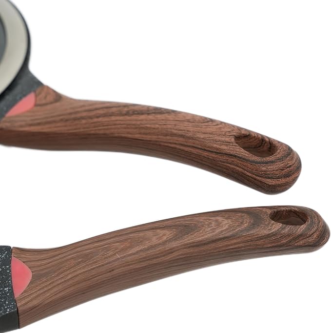 • 【Glass Lid & Heat-Resistant Handle】Features durable tempered glass lid for easy cooking monitoring. The woodgrain Bakelite handle provides ergonomic grip and stays cool during use.