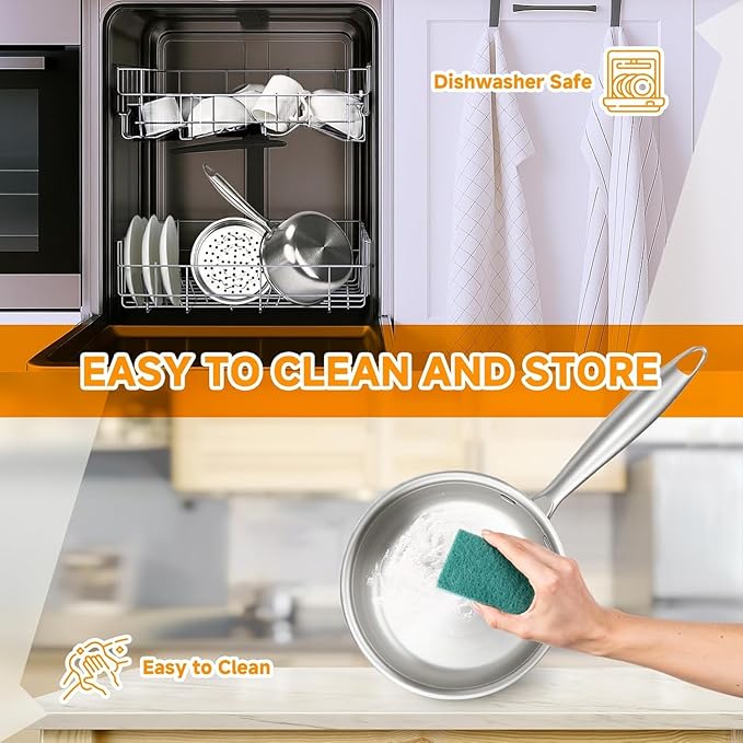 - Versatile 2-in-1 Design: This high-quality stainless steel saucepan features a built-in steamer basket, perfect for preparing delicious, healthy meals while saving space in your kitchen. Ideal for simmering, boiling, and slow cooking, this saucepant is perfect for preparing soups, stews, pasta, chili, and much more, making it an indispensable addition to your culinary arsenal