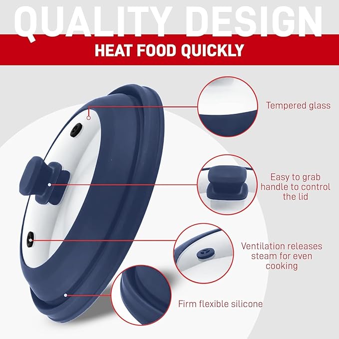 • 🔐 HEAT-SAFE MICROWAVE FOOD COVER: The dome has a silicone handle so you don’t burn your hands when you touch it. The clear glass top has vents to release steam for even heating and cooking.